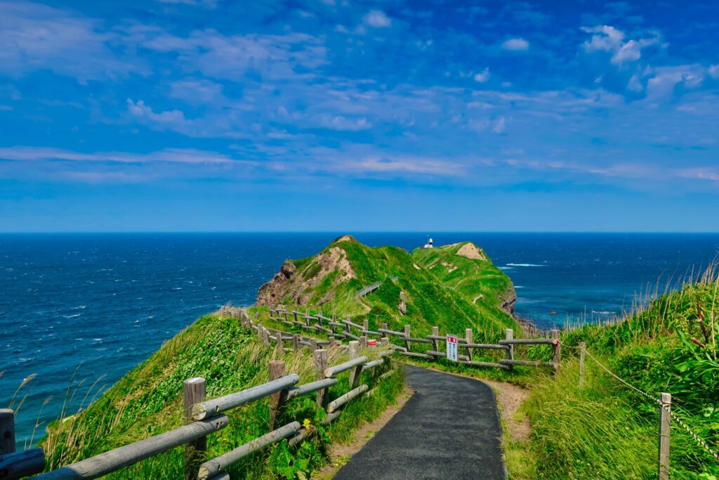 起伏に富む神威岬の景観や積丹ブルーの海を眺めながら進みます。