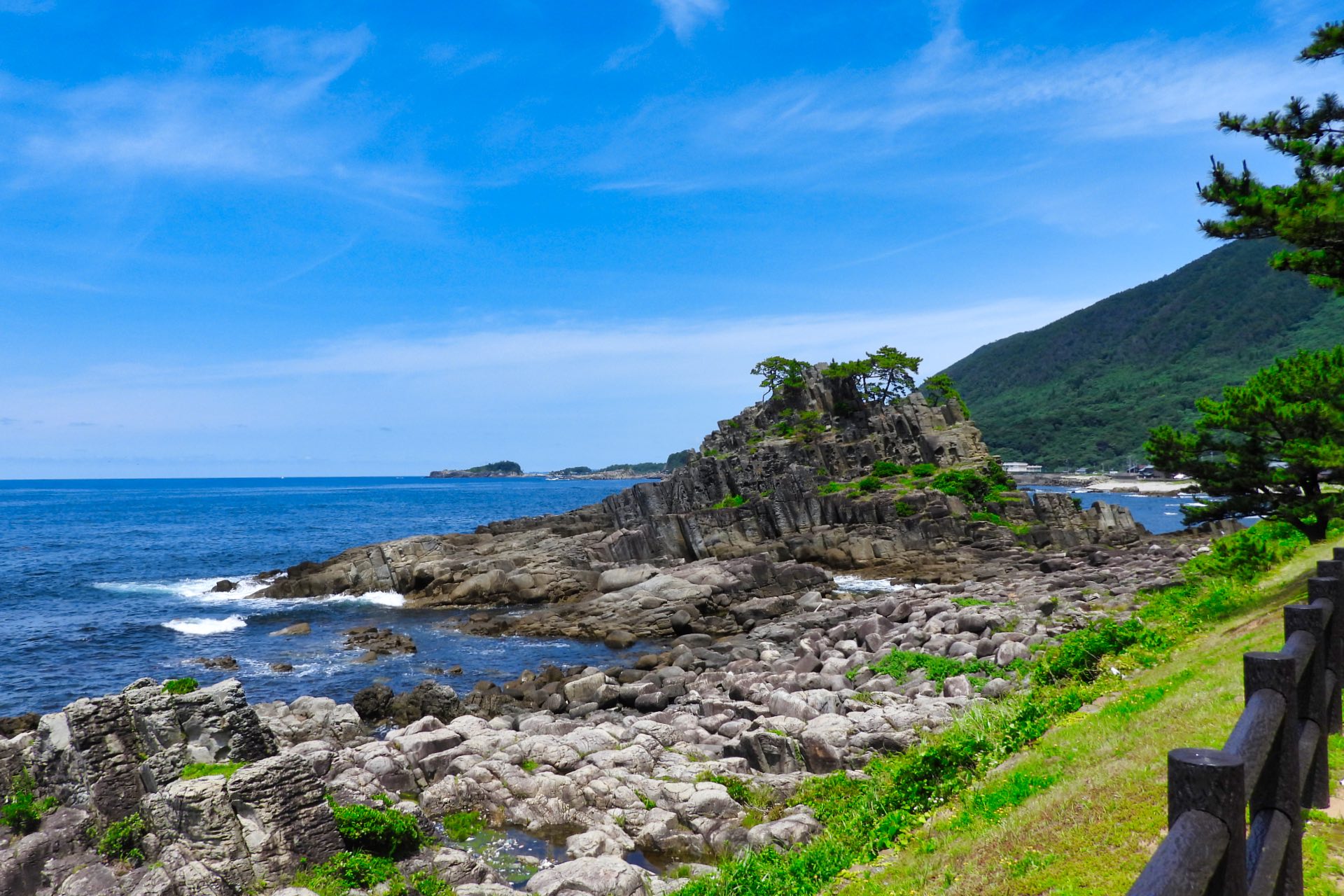 福井県の北部の風光明媚な越前海岸(国道305号線)をクルマで走行していると、様々な形の岩が見られます。