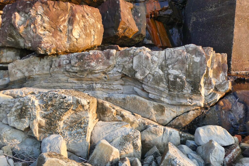 ここは、4000~2200万年前に,海洋プレートの沈み込みに伴って付加された日南層群(にちなんそうぐん)とよばれる砂岩泥岩互層が露出する場所である。