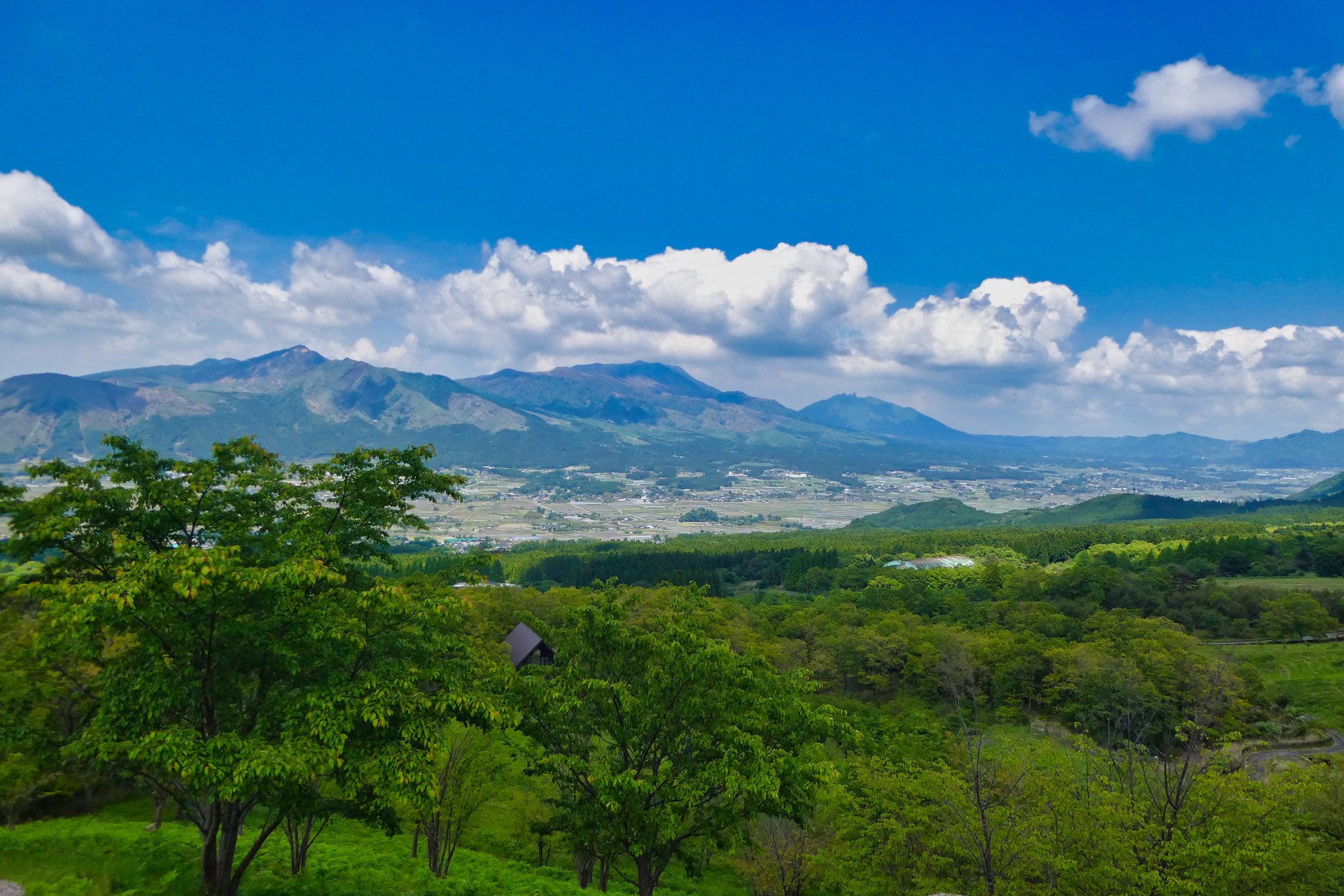 阿蘇山の山並みが少し遠いですが、美しい景色を堪能できると思います。