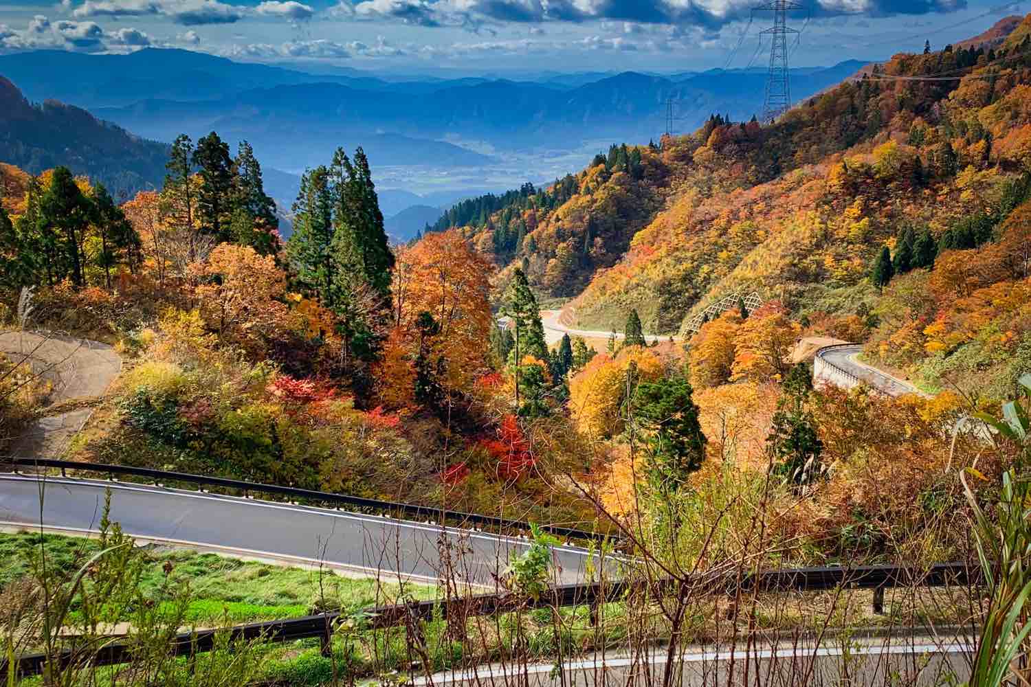 上の写真は、秋に大日峠を登る国道416号線のワインディングロードです.