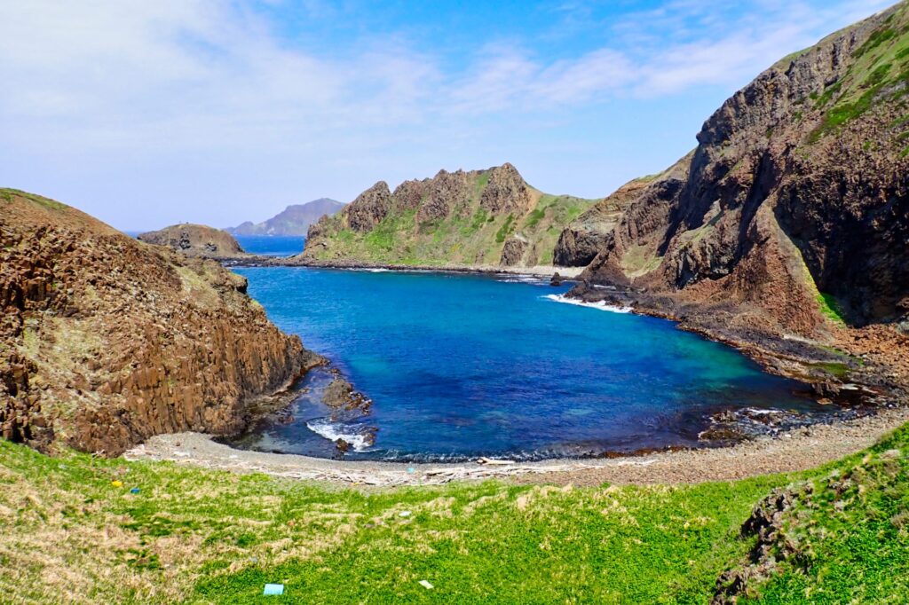 澄海岬(すかいみさき)は、礼文島の西北にあり海がきれいに見える場所としても有名、弧を描く湾や柱状節理等が見られる断崖も見どころです